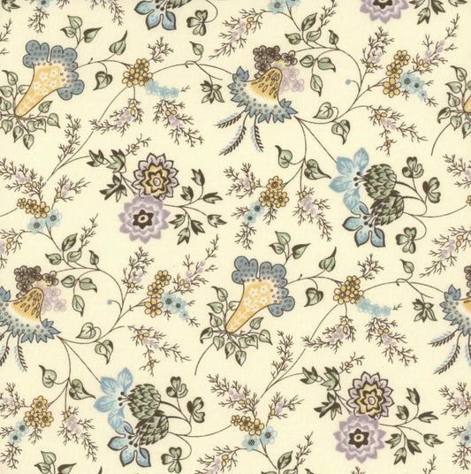 Tela de Algodón Flores Beige sobre Blanco