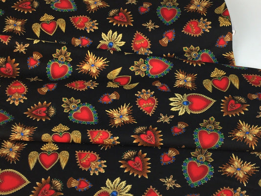 Tela de Algodón Sagrado Corazón Fondo Negro