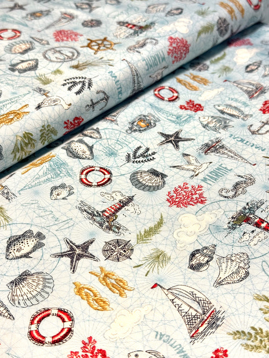 Tela de Algodón Maritime Light Azul
