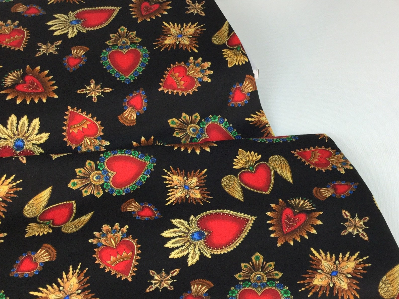 Tela de Algodón Sagrado Corazón Fondo Negro